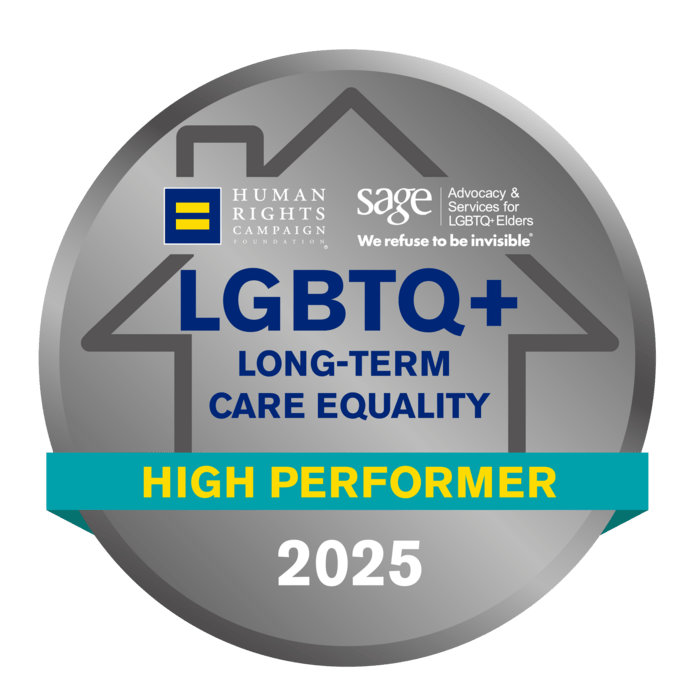 High Performer in the Long-Term Care Equality Index, recognizing inclusive, equitable care for LGBTQ+ elders.